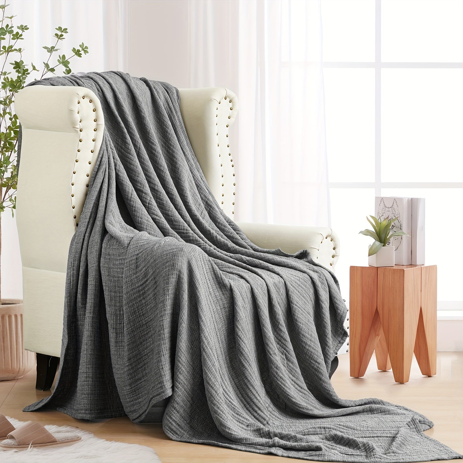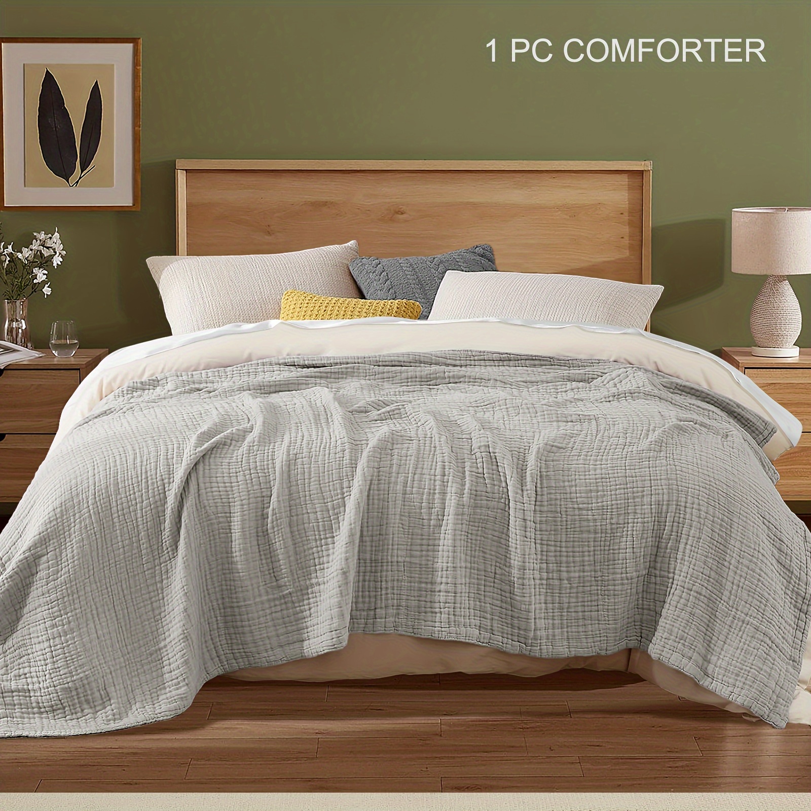 Product Description: Wrap yourself in the comfort of this luxurious muslin comforter. Featuring a reversible jacquard weave and pre-washed 4-layer... Read more