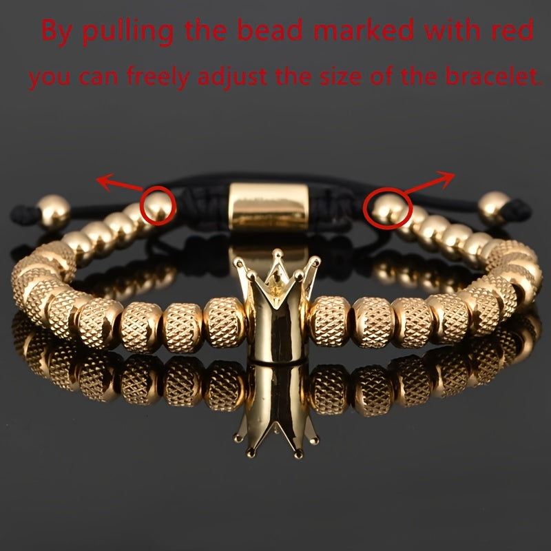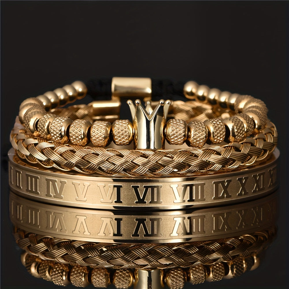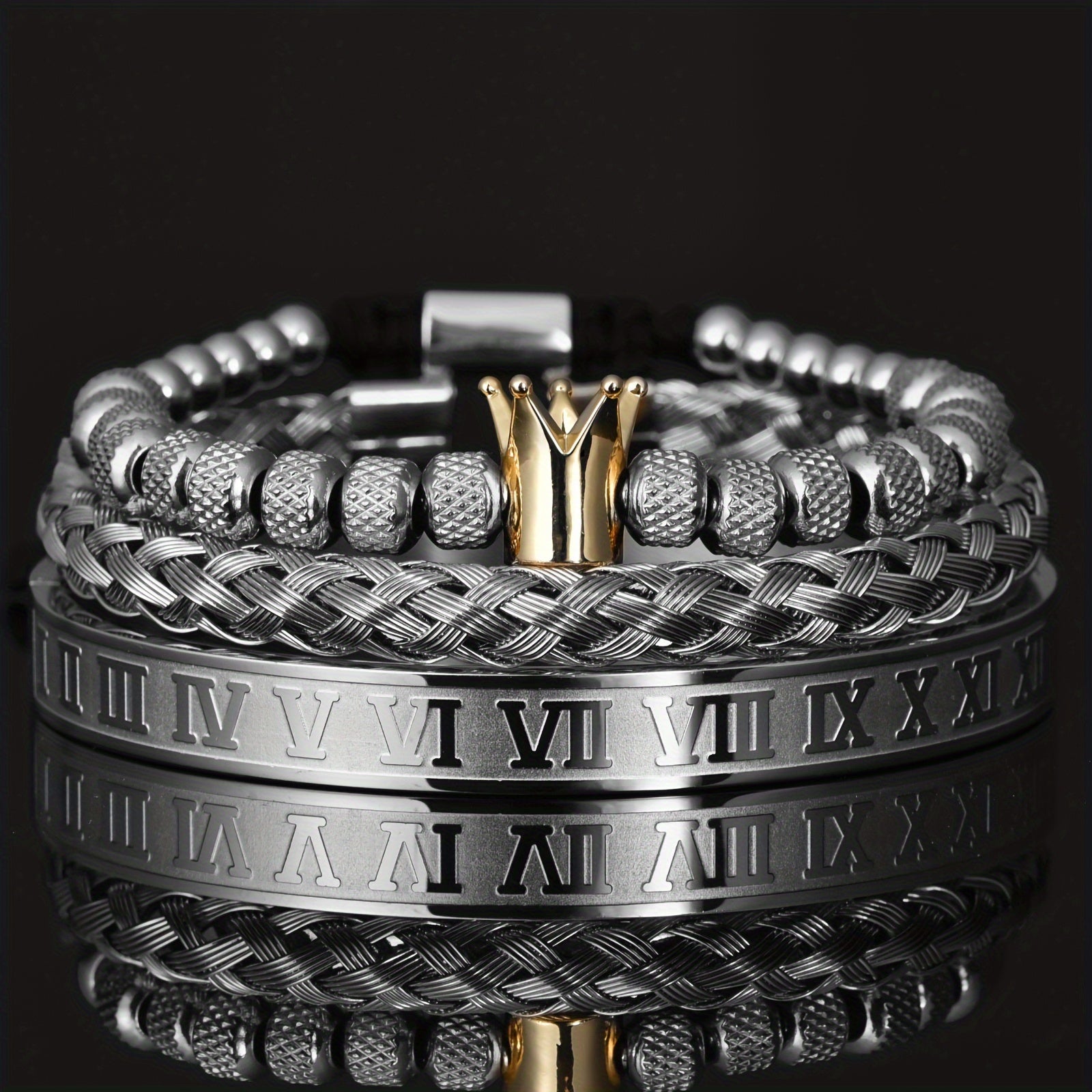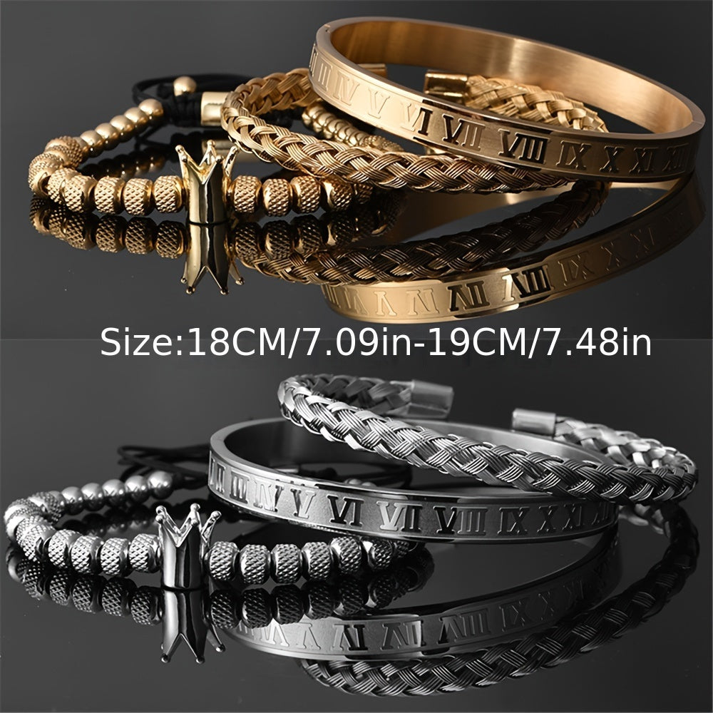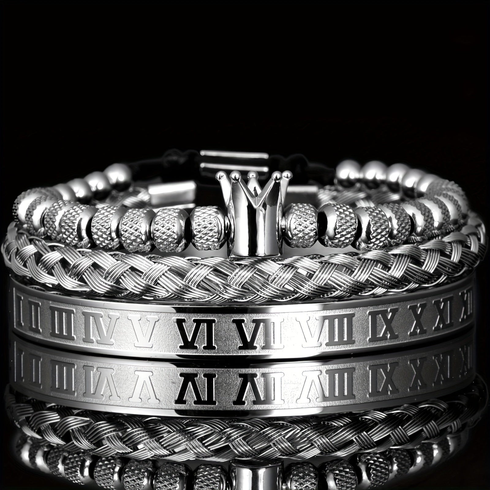 Description: Elevate your style with this sleek stainless steel bracelet set, featuring a royal crown charm and Roman numerals. A... Read more