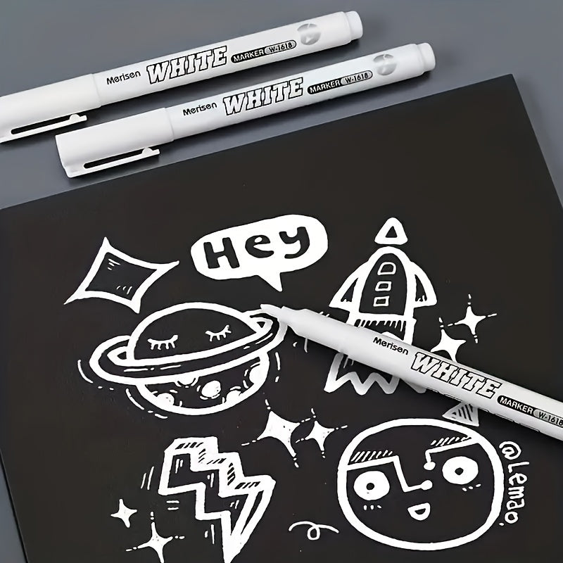 Description: Bring your creative projects to life with these white, waterproof, and permanent markers. Ideal for fabric, wood, leather, and tire art, offering smooth and bold lines.