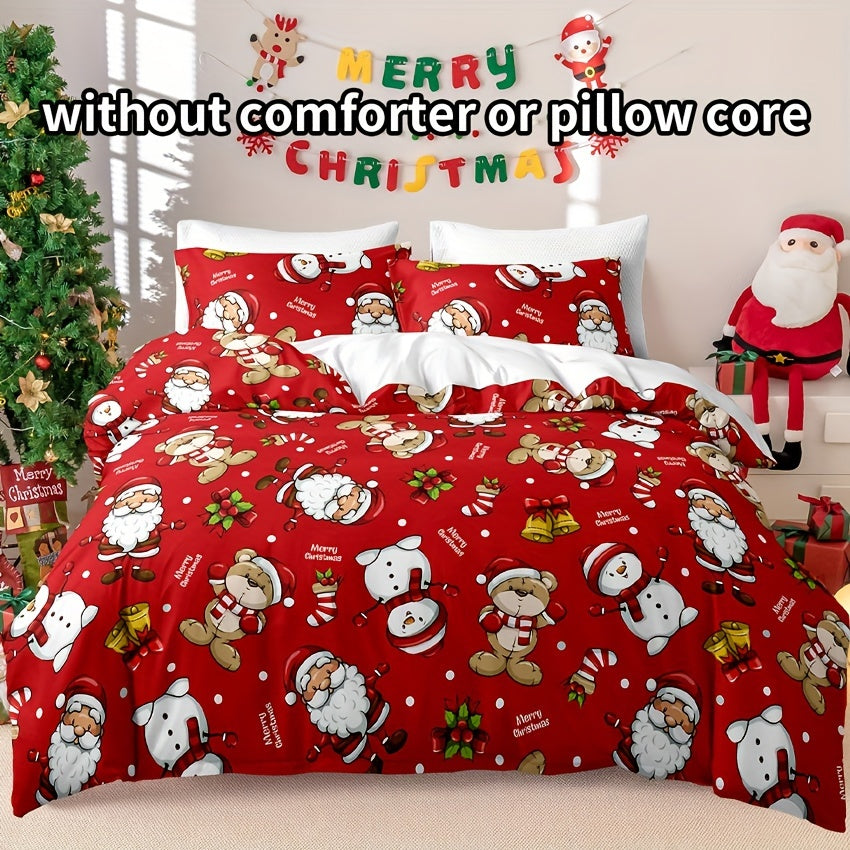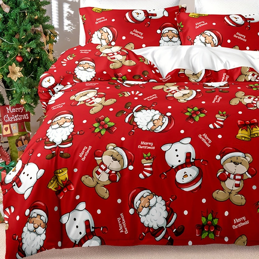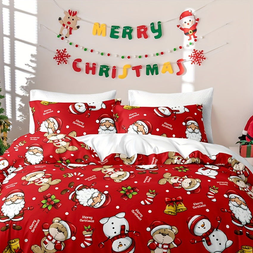 3pcs Christmas Celebration Duvet Cover Set - Festive & Cozy
