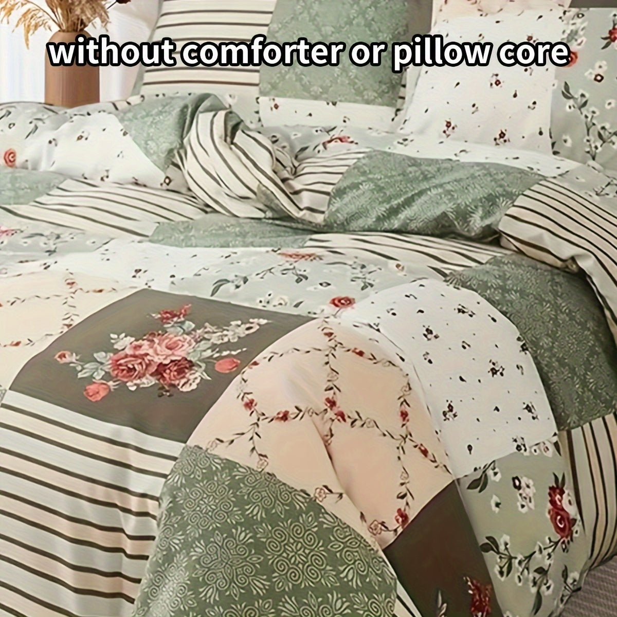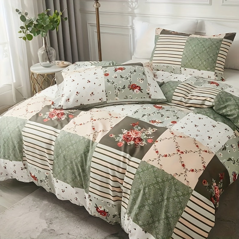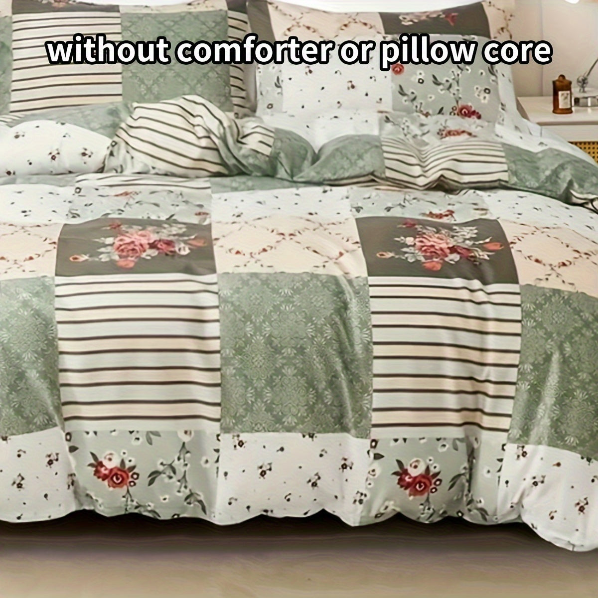 Pastoral Flower Plaid Duvet Cover Set - 3pcs Cozy Style