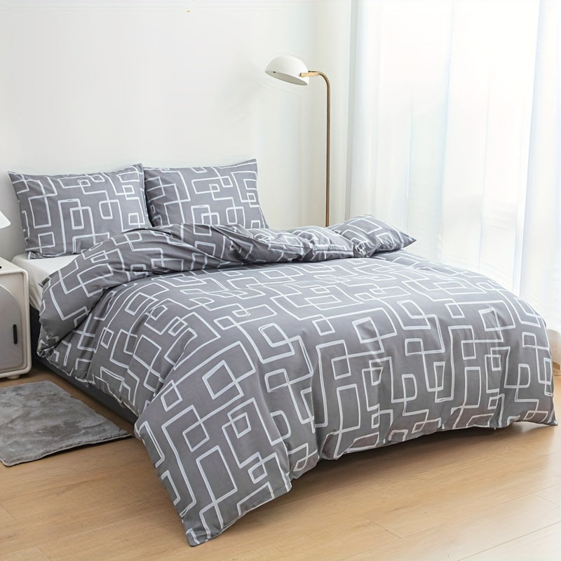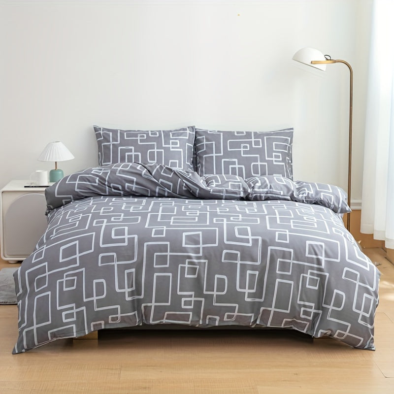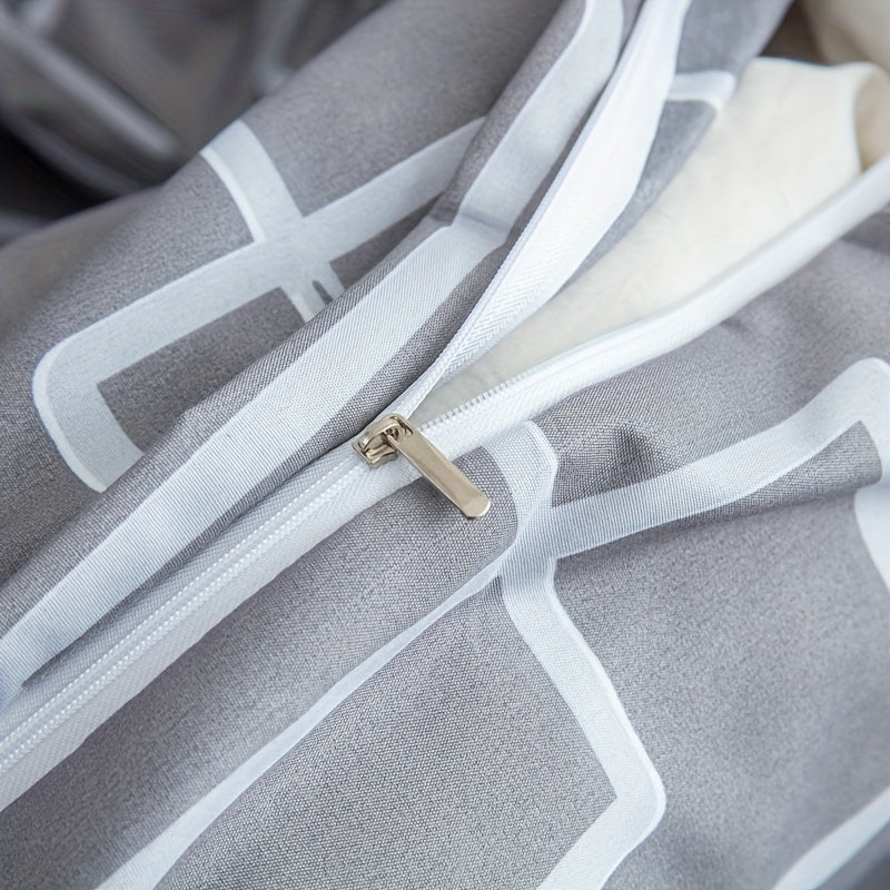 3pcs Ultra-Soft Gray Striped Duvet Cover Set