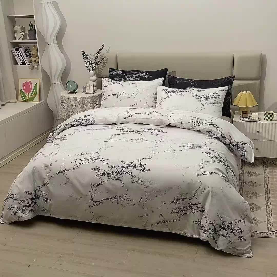 3pcs Polyester Printed Marble Pattern Quilt Cover Three-piece Set