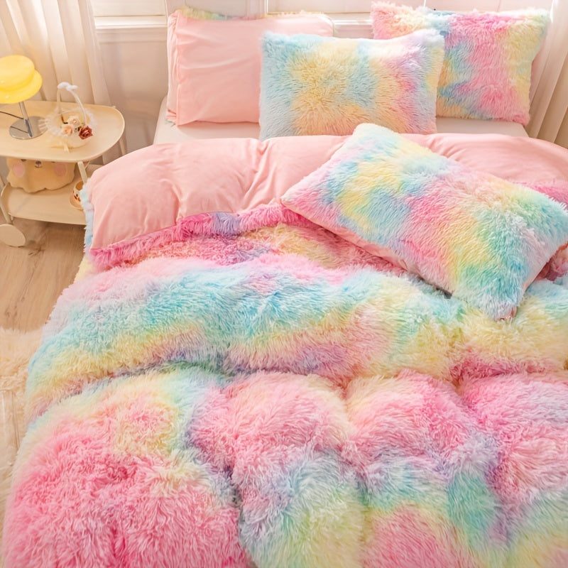 Product Description: Transform chilly nights into luxurious warmth with this plush tie-dye duvet set. Its cozy long-hair texture and vibrant...