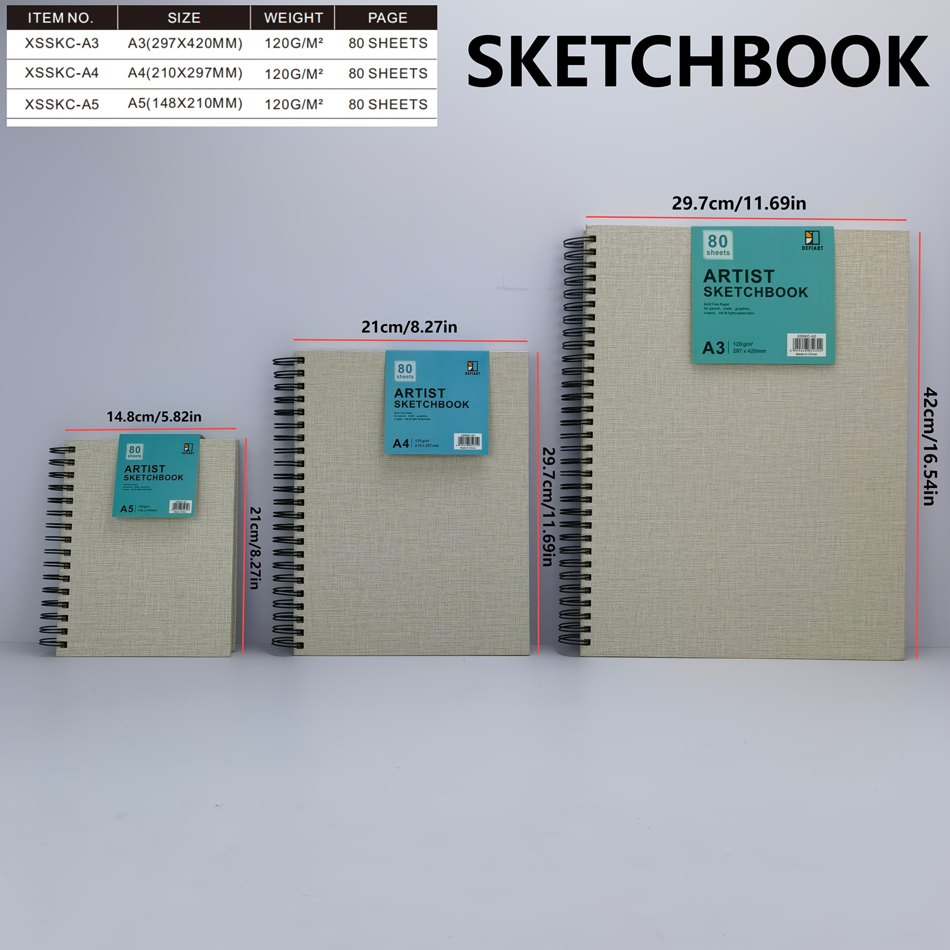 120gsm acid-free paper, spiral binding, blank loose-leaf 80 sheets/book / 8.27x11.69in/21x29.7cm【A4】Medium