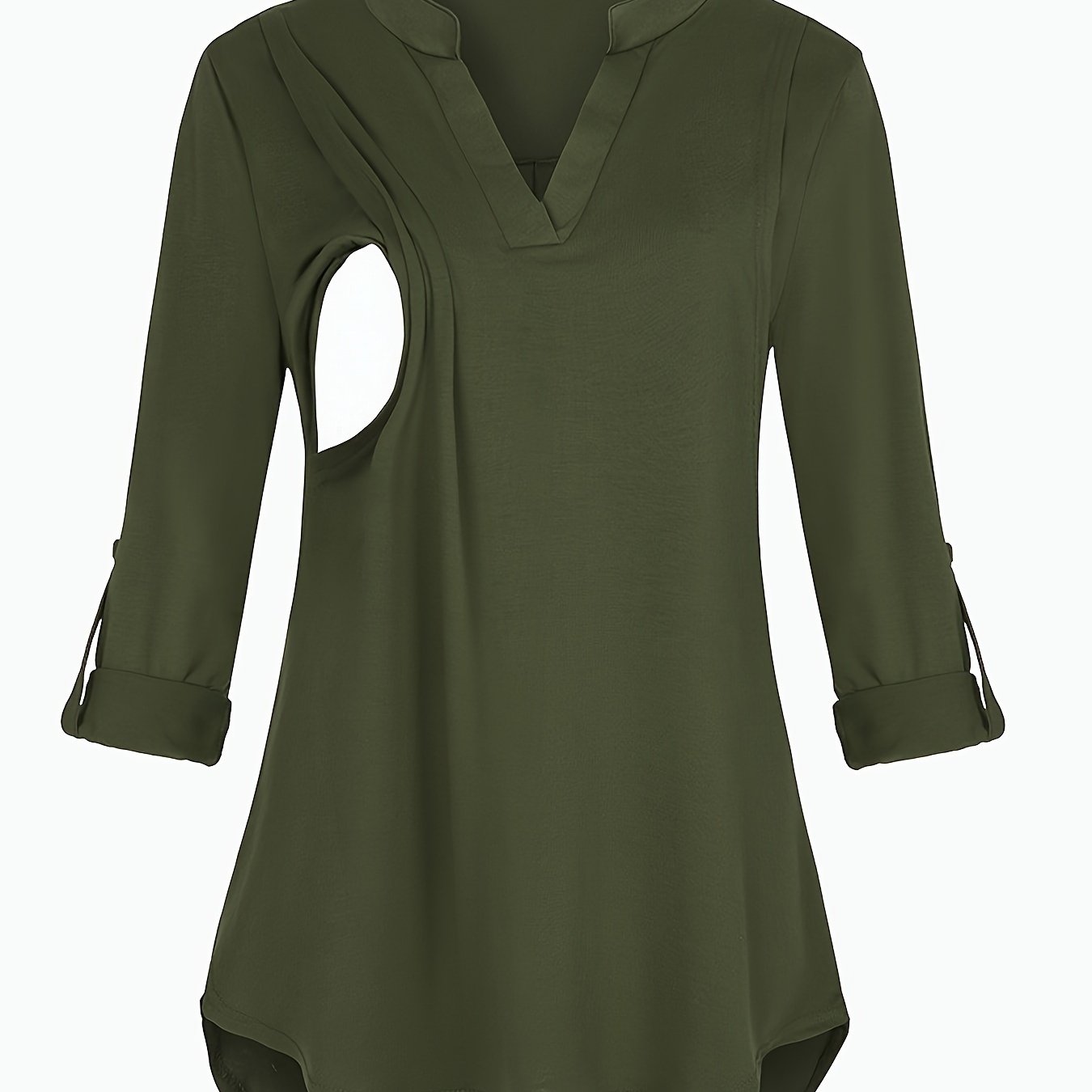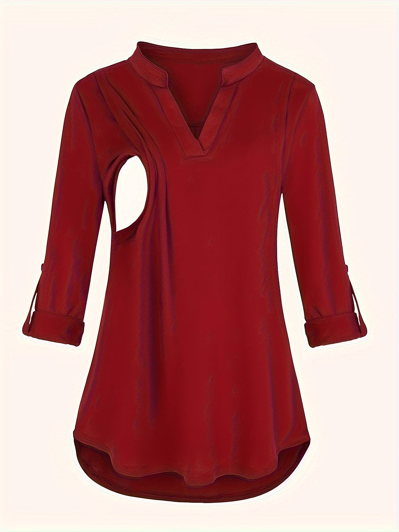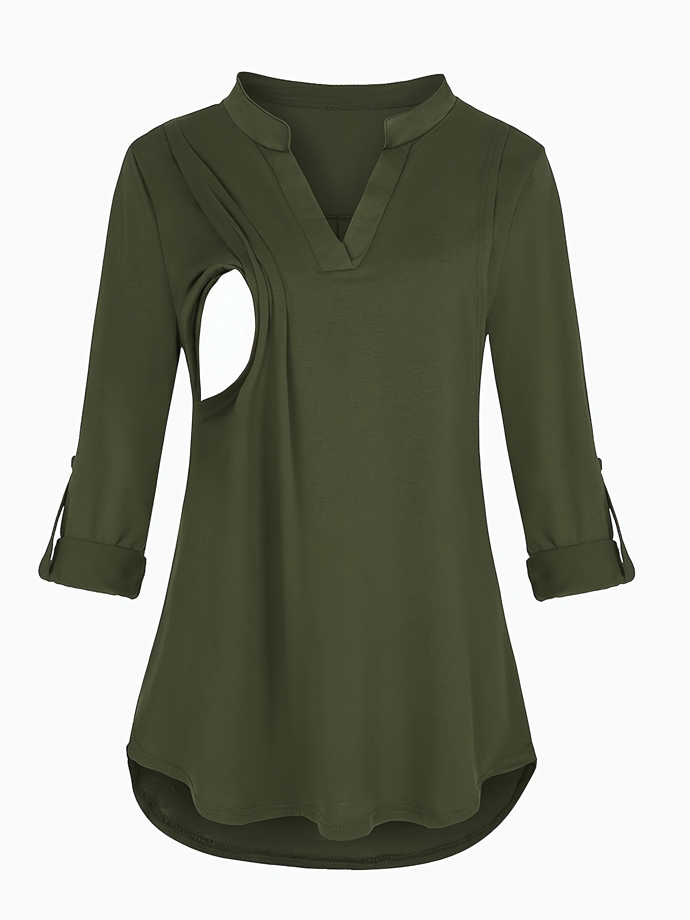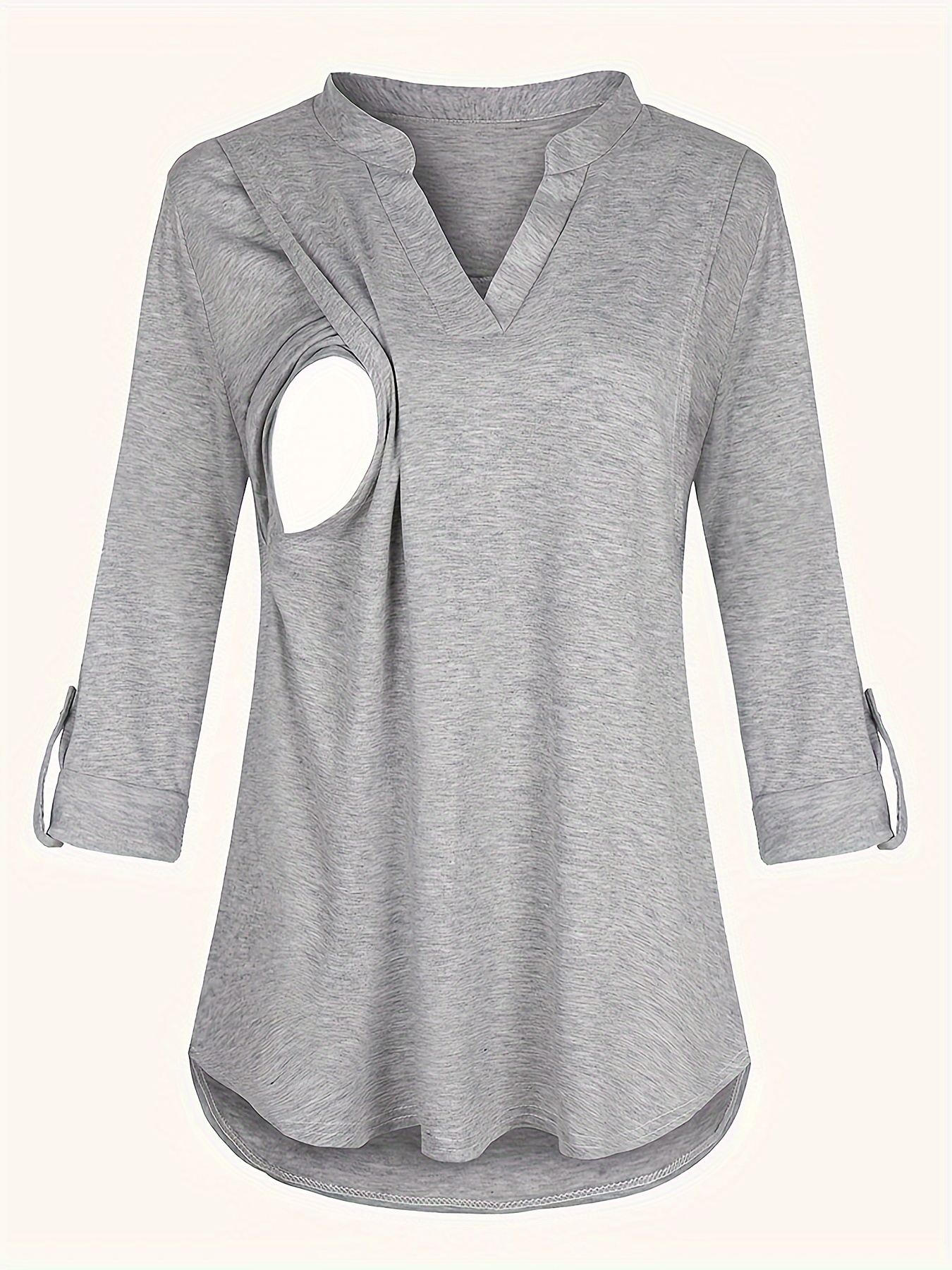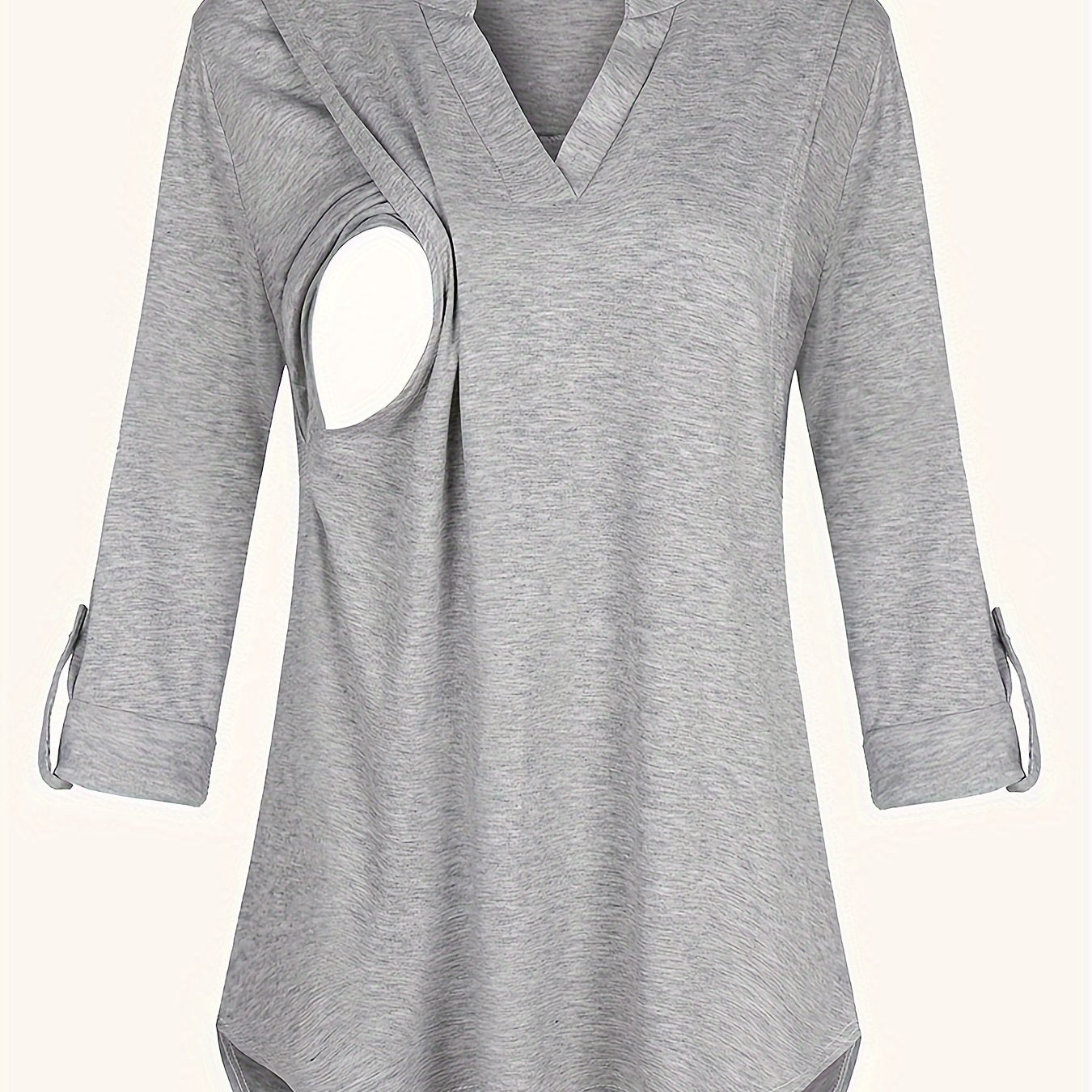 Solid Color V-Neck 3/4 Sleeve Nursing Top